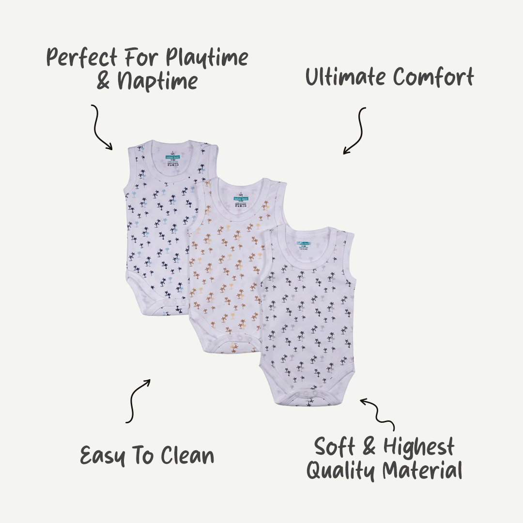 Set of 3 Sleeveless Rompers/Bodysuits - Printed Patterns | Up to 24 Months | 100% Cotton | For Adorable & Comfortable Baby Wear