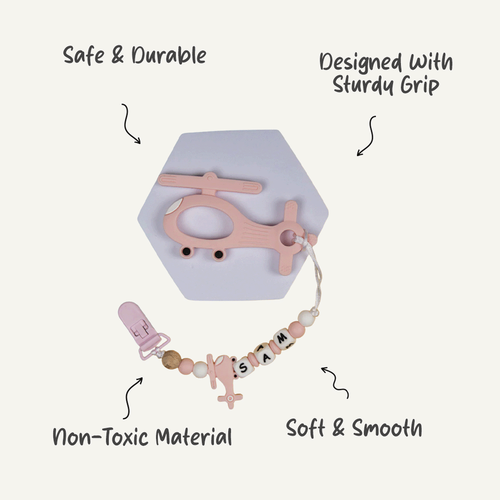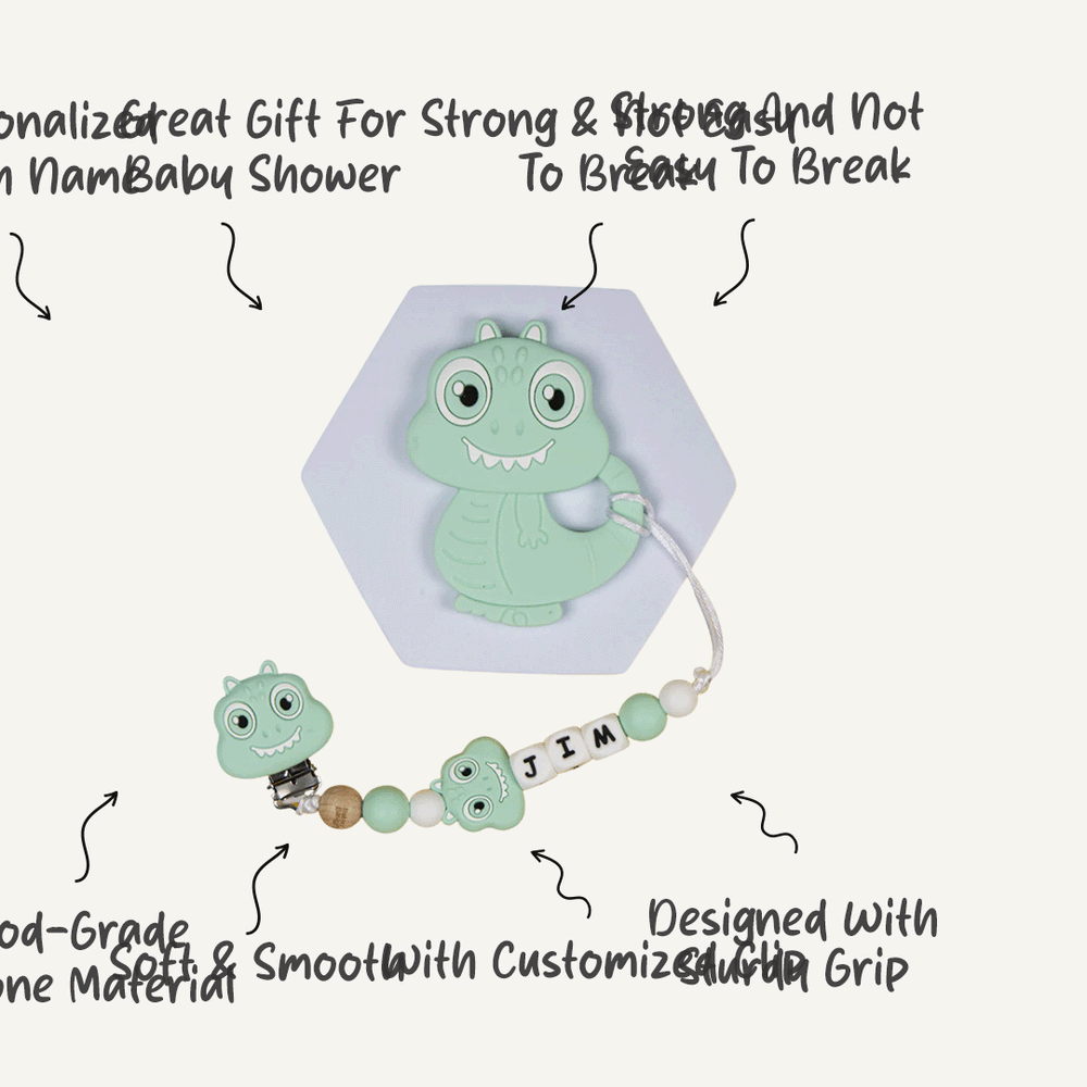 Introducing Babies Basic's Personalized Pacifier Clip, the perfect blend of safety and style for your little one! Our pacifier clip is meticulously crafted to keep your baby's pacifier secure and within easy reach while adding a personalized touch. Made from premium, BPA-free silicone, it ensures safety and durability.