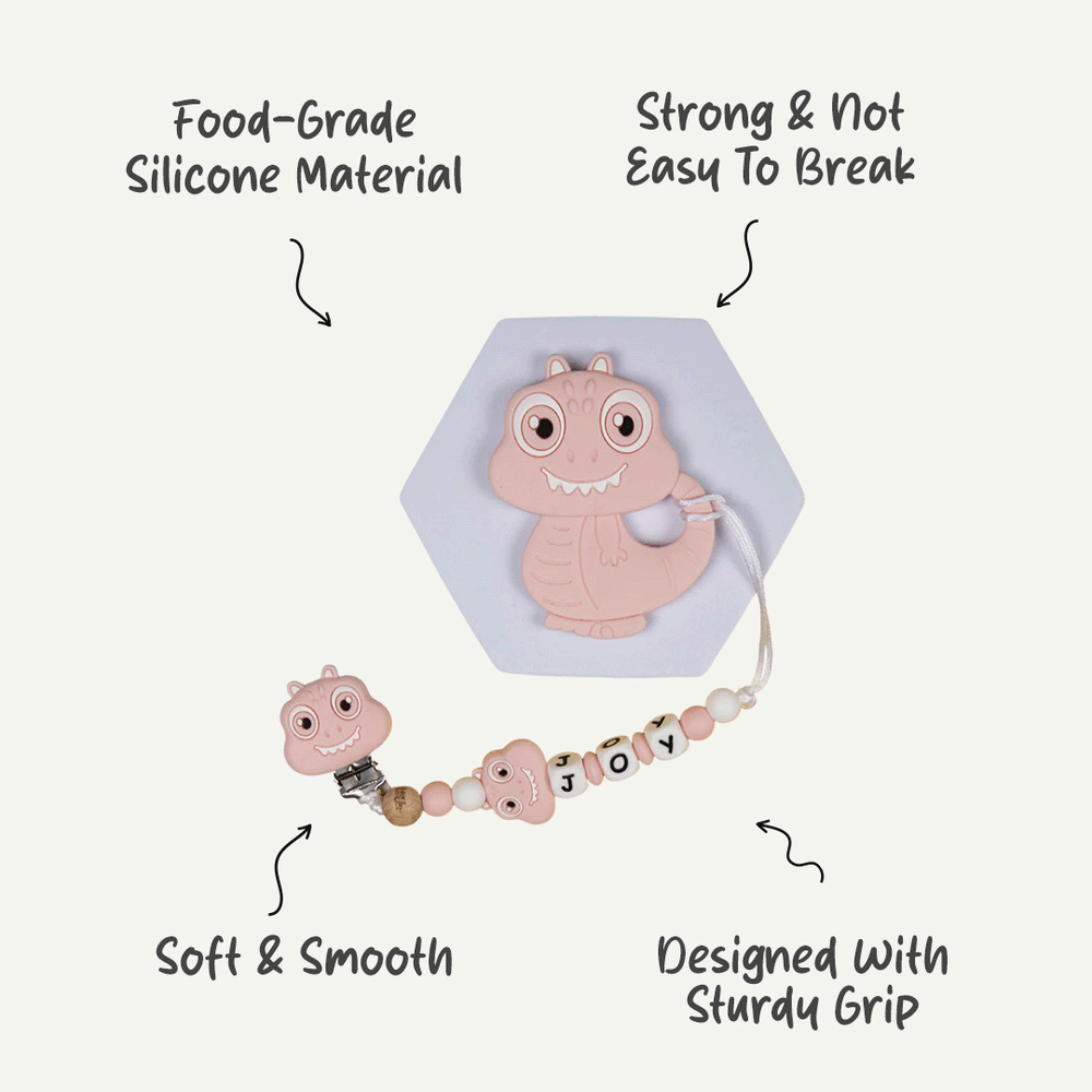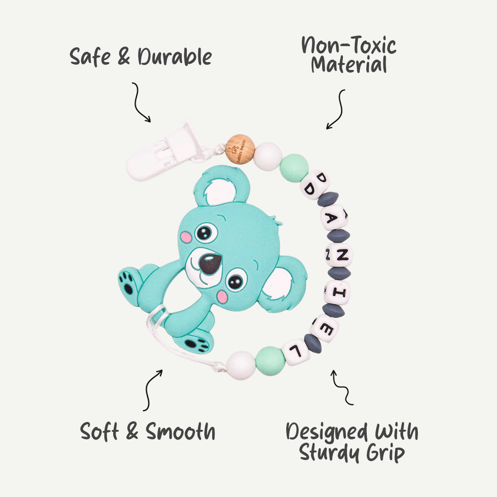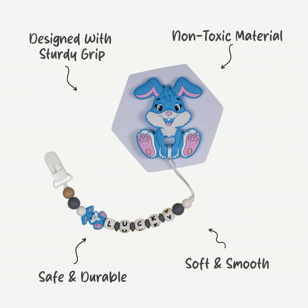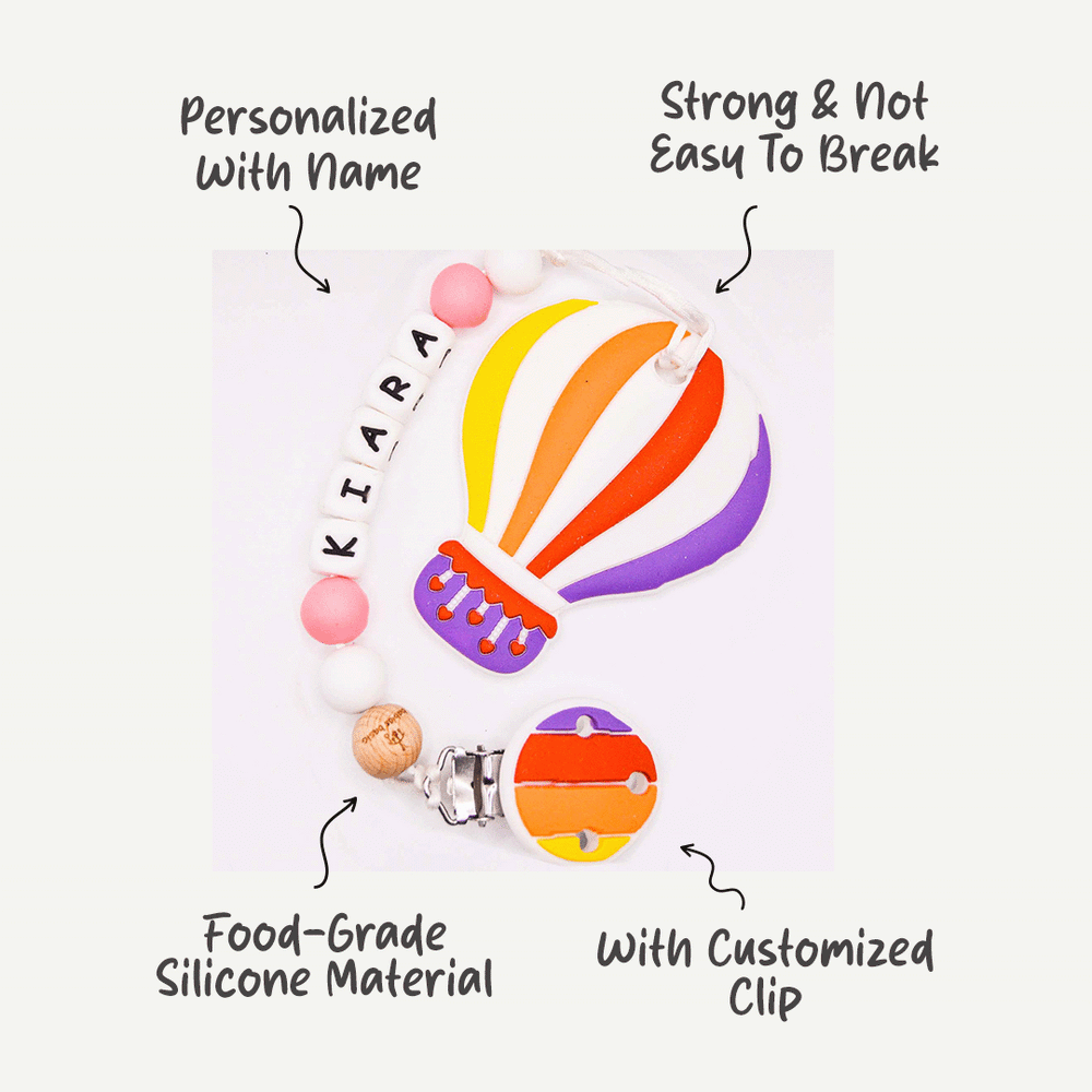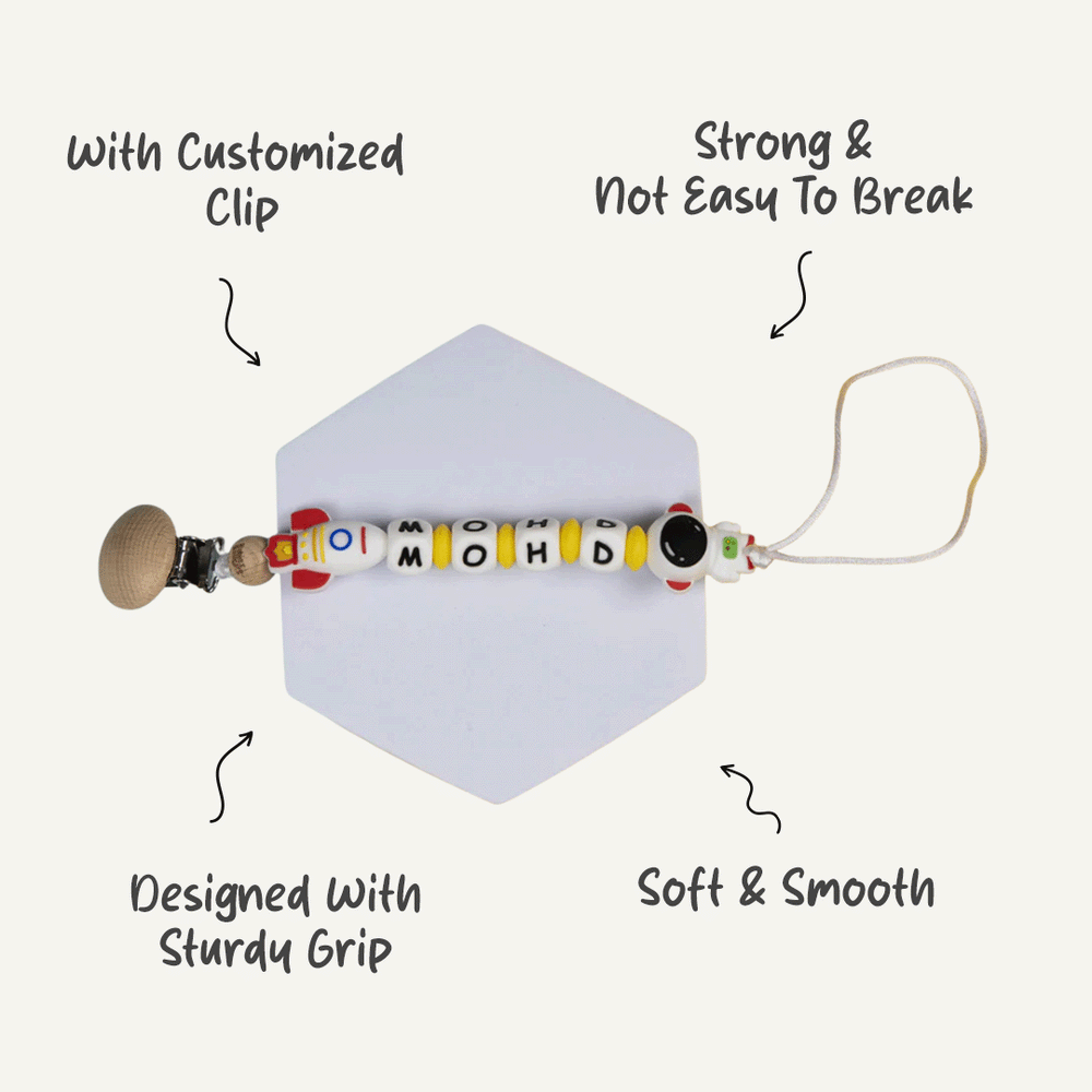 What sets our pacifier clip apart is the option to customize it with your baby's name, making it a unique accessory that reflects your child's personality. With a variety of colors and designs to choose from, Babies Basic's Personalized Pacifier Clip not only keeps pacifiers close but also adds a touch of individuality to your baby's essentials.