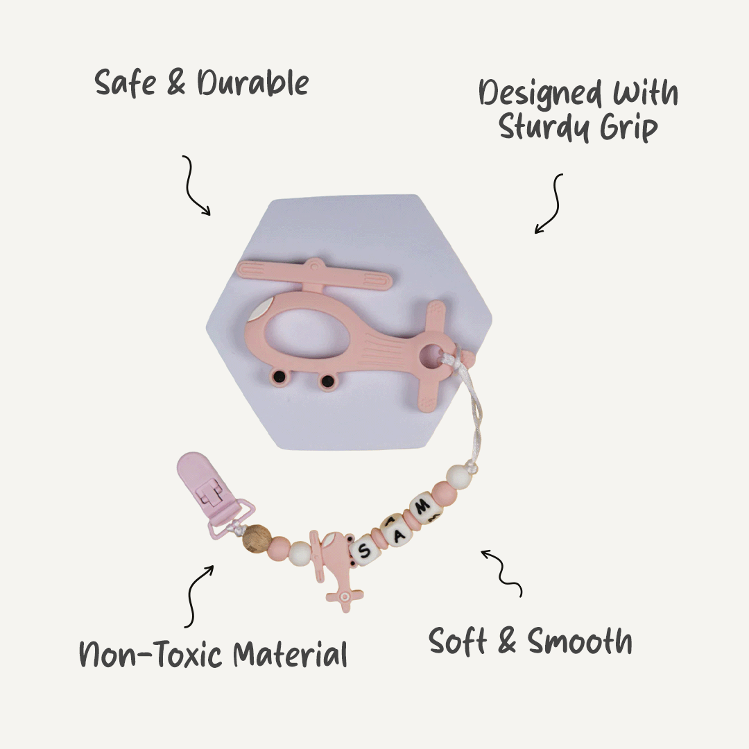 Personalized Pacifier Clip - Pink Helicopter | Silicon Material