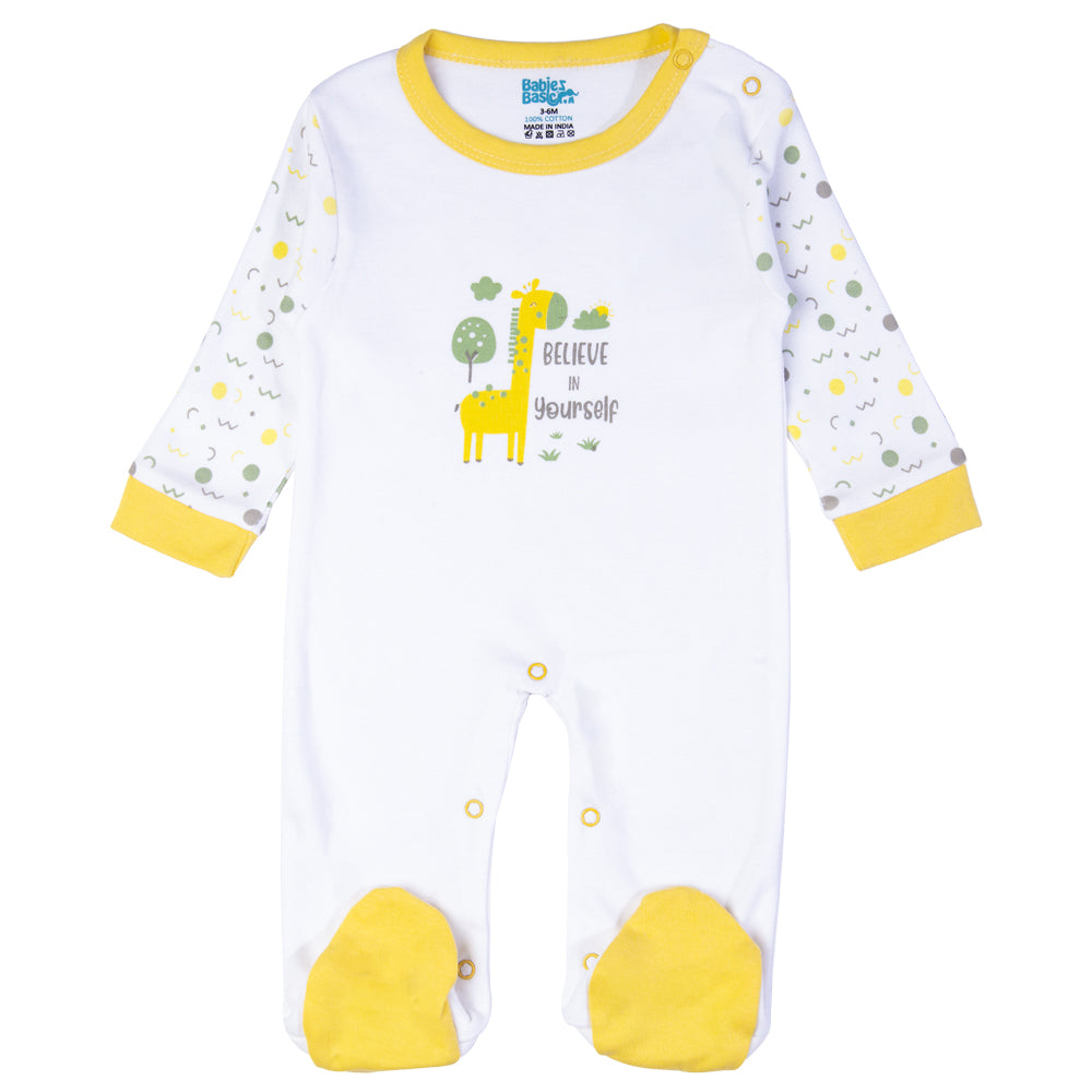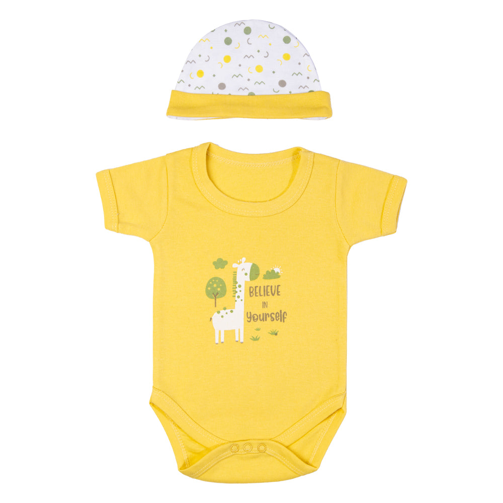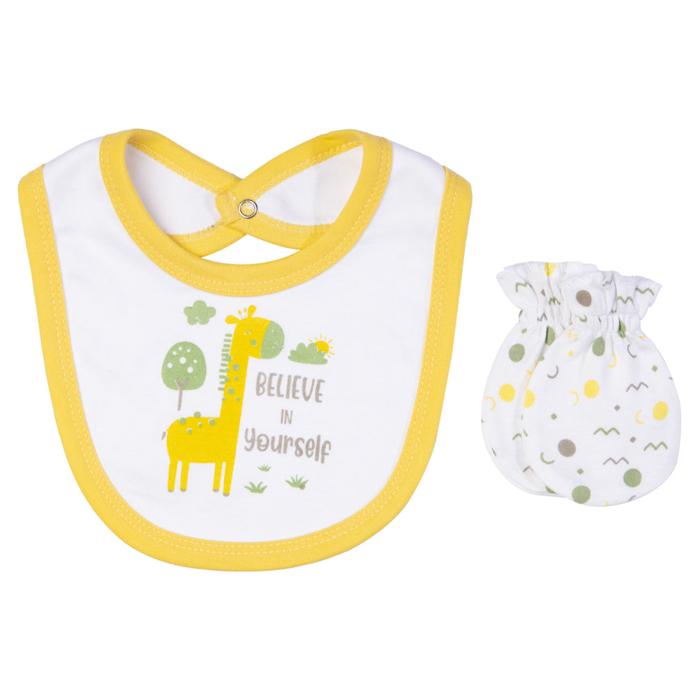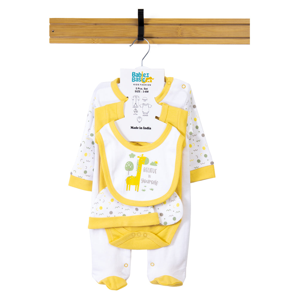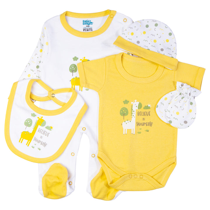 5pc Cotton Set - Bib, Romper, Mittens, Cap, Sleepsuit - Believe in Yourself - Lemon/Yellow