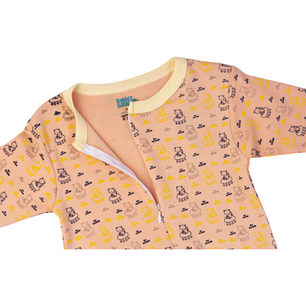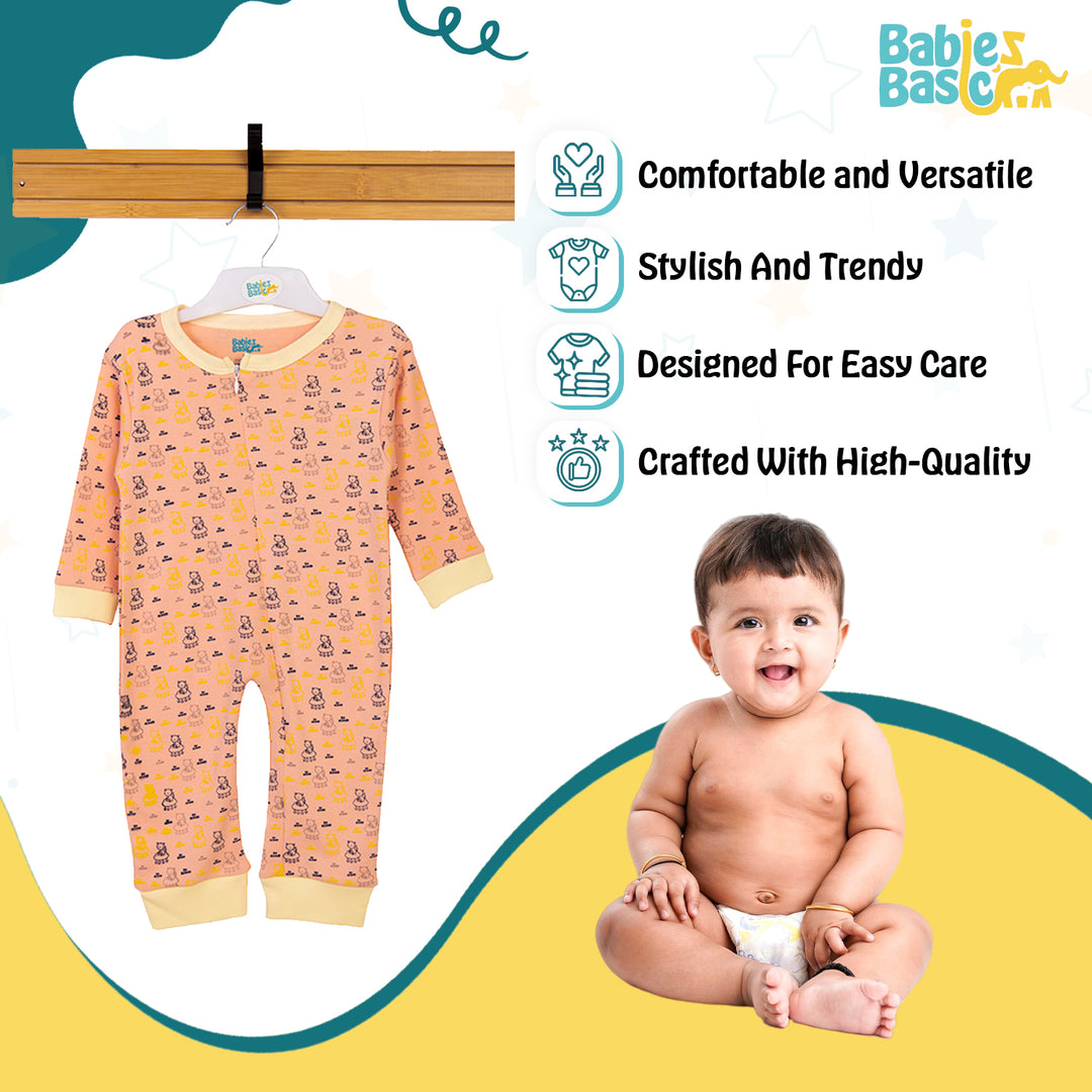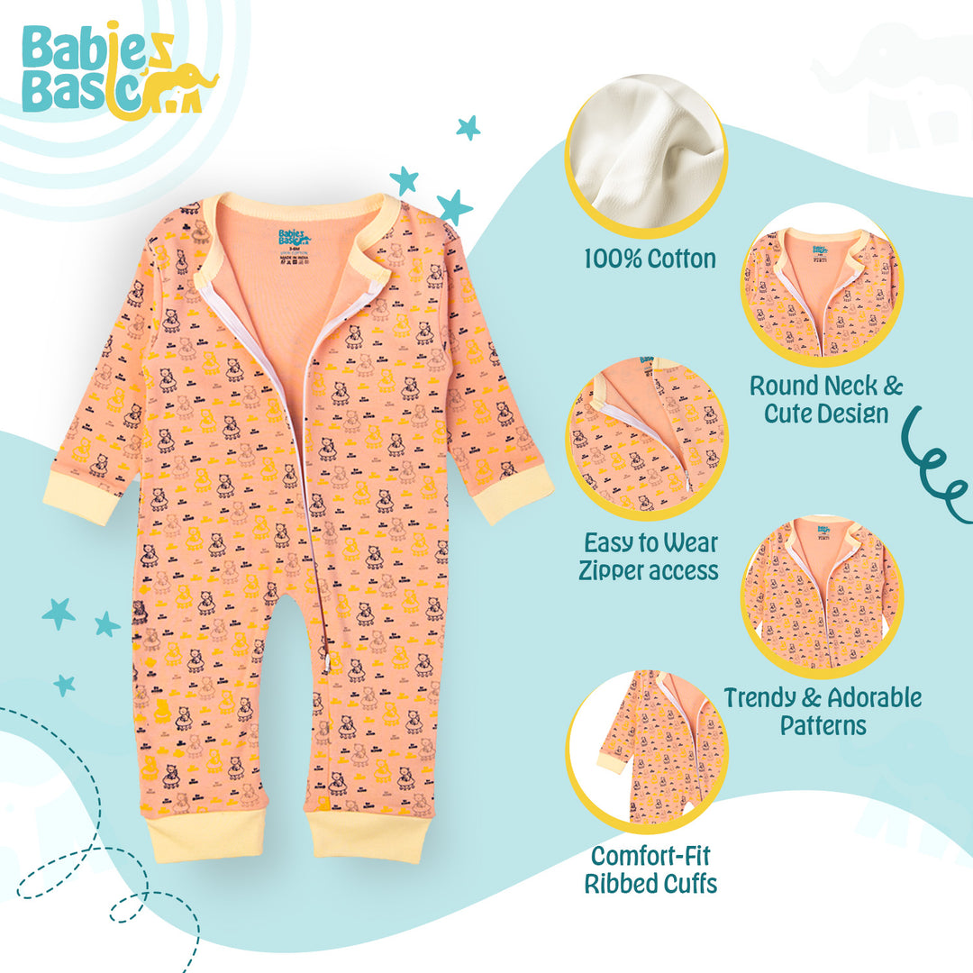 Babies Basic - Printed Cotton Long Sleeves Jumpsuit/Romper - Orange