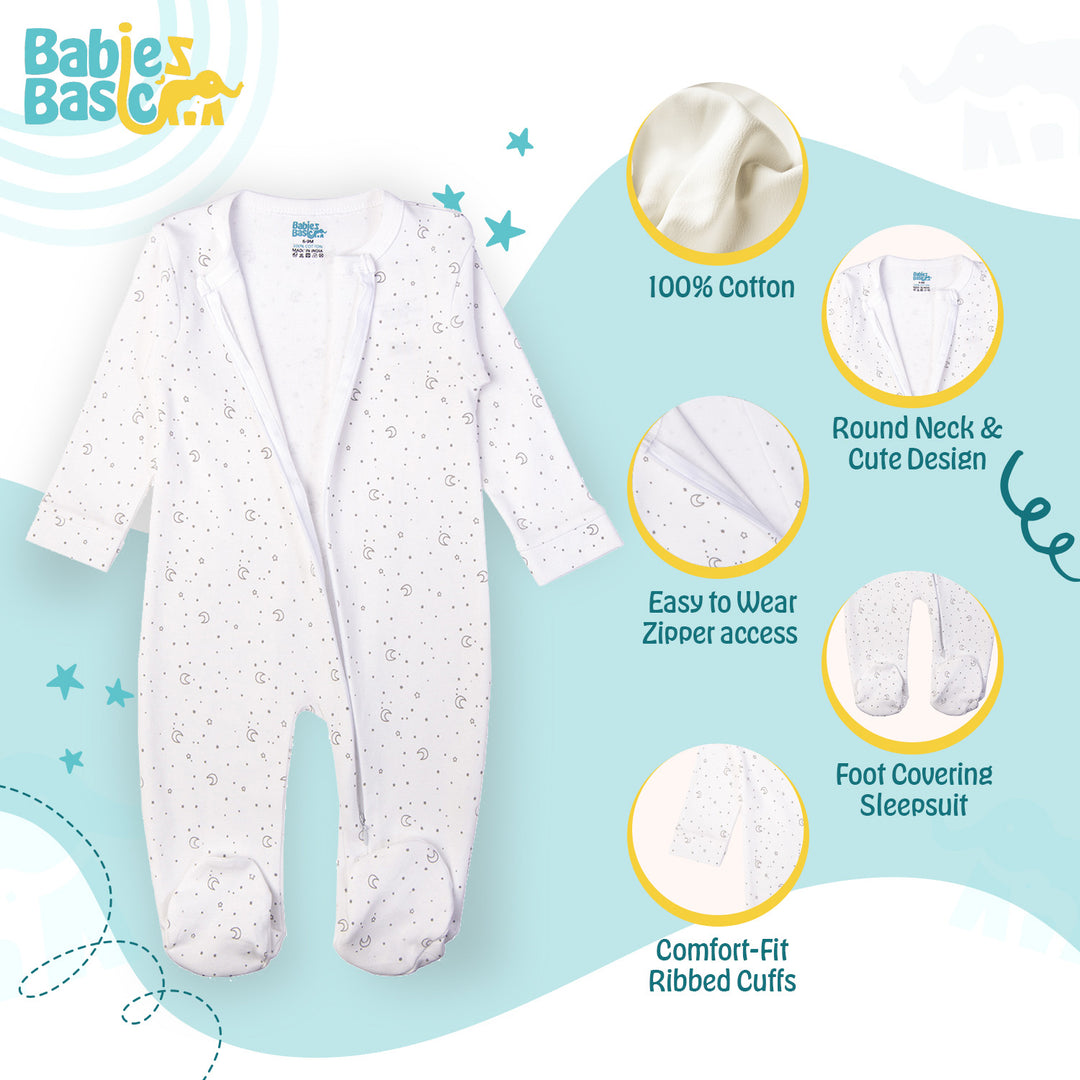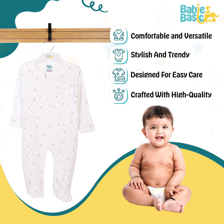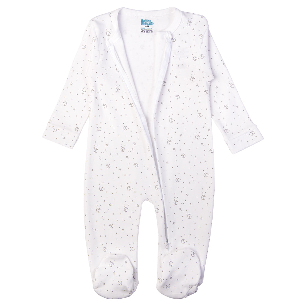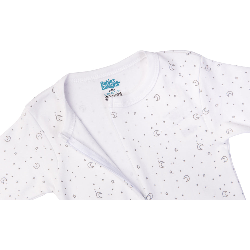 Babies Basic - Printed Cotton Long Sleeves Jumpsuit/Romper - White