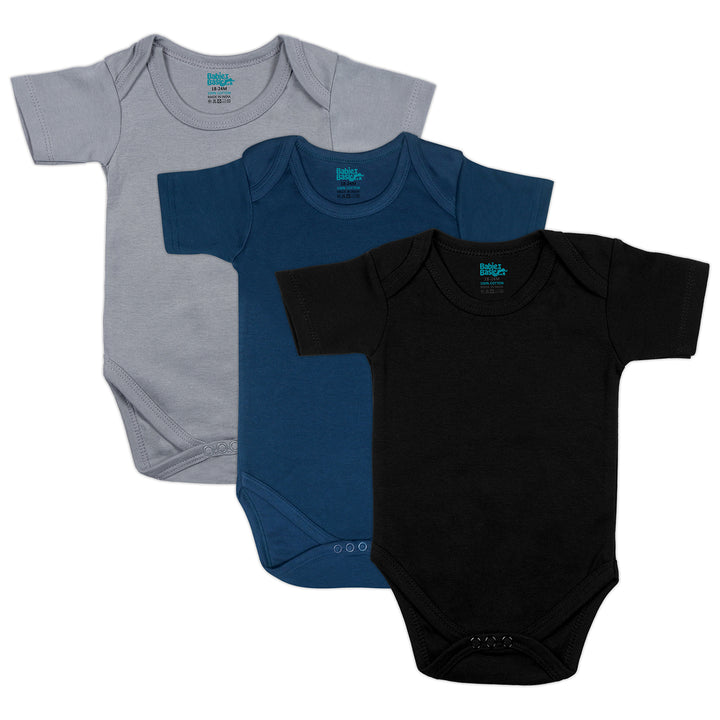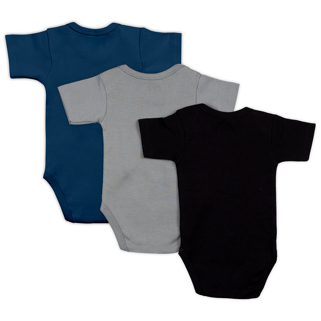 Set of 3 Short Sleeves Rompers/Bodysuits (Black, Navy, Grey) - Up to 24 Months | 100% Cotton |  For Stylish Comfort