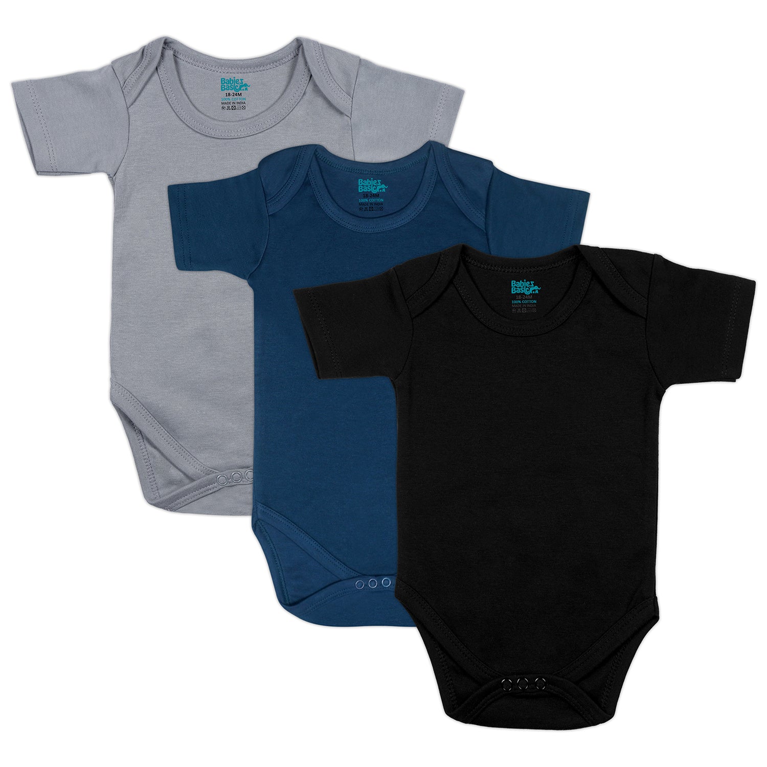 Set of 3 Short Sleeves Rompers/Bodysuits (Black, Navy, Grey) - Up to 24 Months | 100% Cotton | For Stylish Comfort