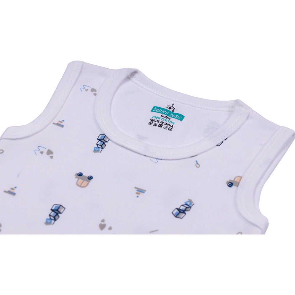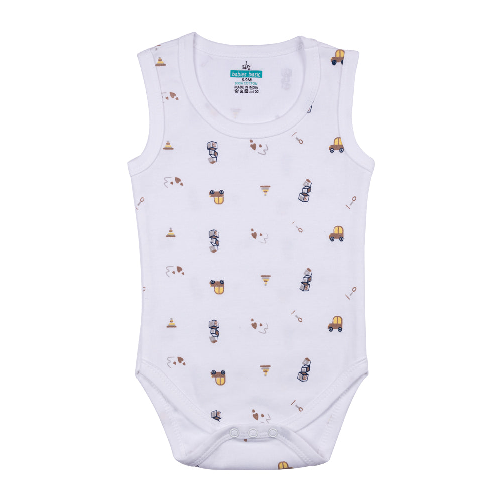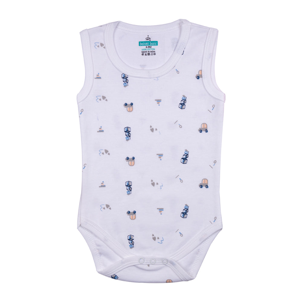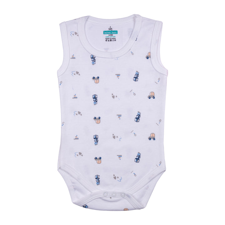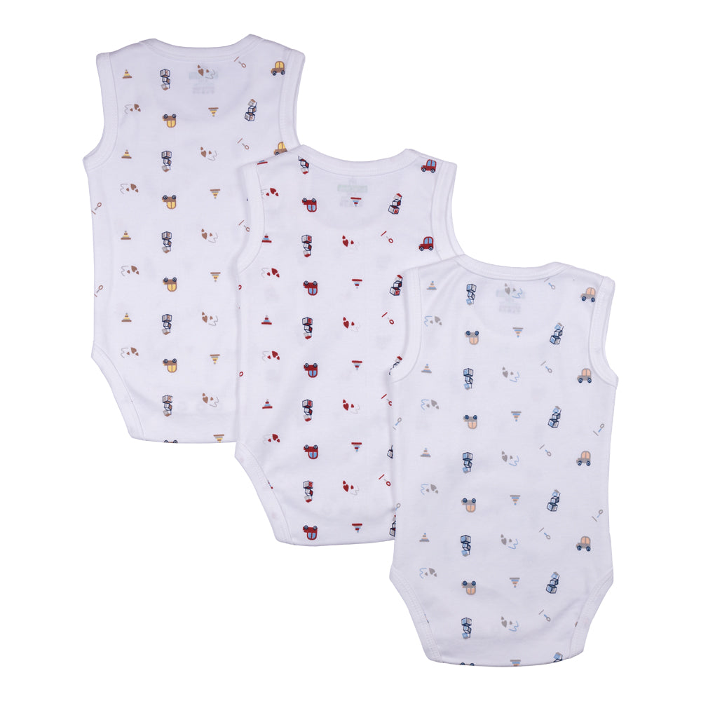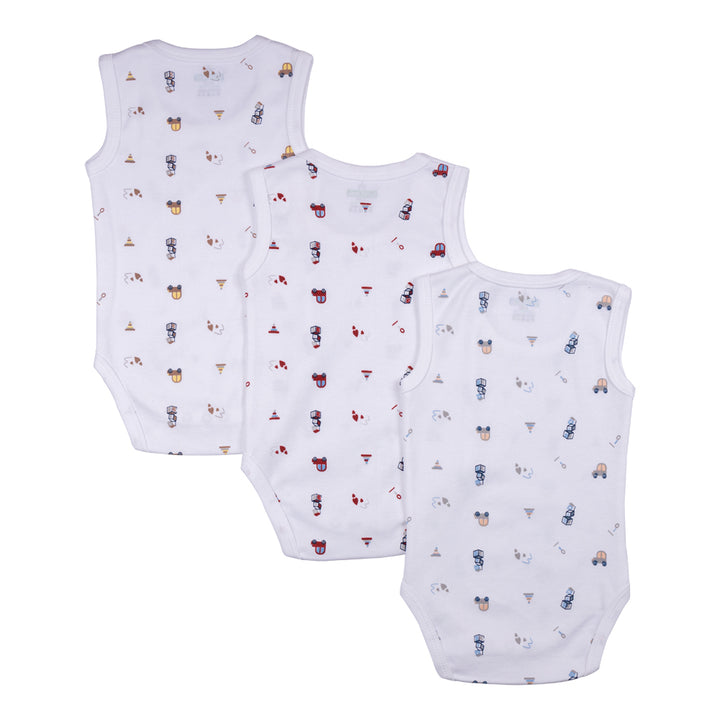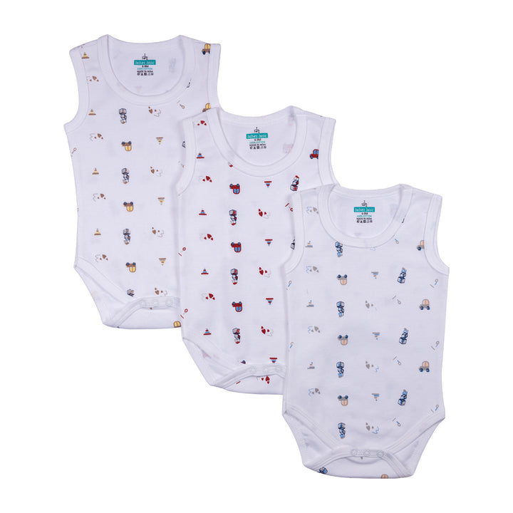 Set of 3 Sleeveless Rompers/Bodysuits - Printed Designs | Up to 24 Months | 100% Cotton | For Fun & Comfortable Baby Wear