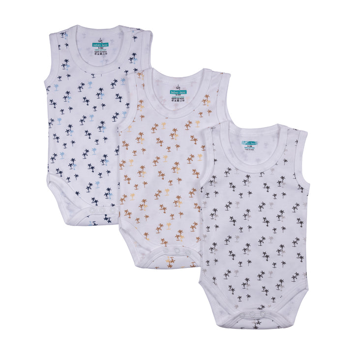 Set of 3 Sleeveless Rompers/Bodysuits - Printed Patterns | Up to 24 Months | 100% Cotton | For Adorable & Comfortable Baby Wear