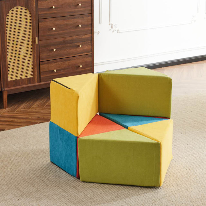 Bring playtime to life with the Block Magic Cube Sofa! This colorful, modular kids’ sofa transforms into 9 fun shapes—from a sofa, table, or recliner to a slide, throne, and more. Soft, safe, and lightweight, it encourages imaginative play, motor skills, and creativity.