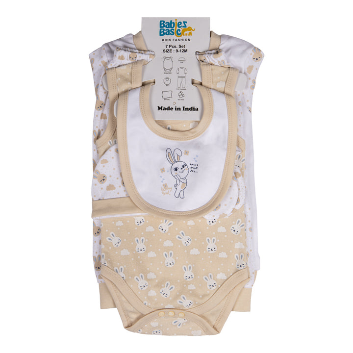 Seven Piece Unisex 100% Cotton Gift Set - Camel | Premium Quality & Perfect for Newborns